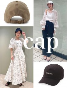 カジュアルコーデはもちろんですが、レディライクなコーデのはずしに起用するのもおすすめ。ホワイトとネイビーの色展開ですが、ホワイトは完売中です。きれいめにかぶれるシルエットも魅力なんです♡キャップ=子供っぽいなんて言わせません!