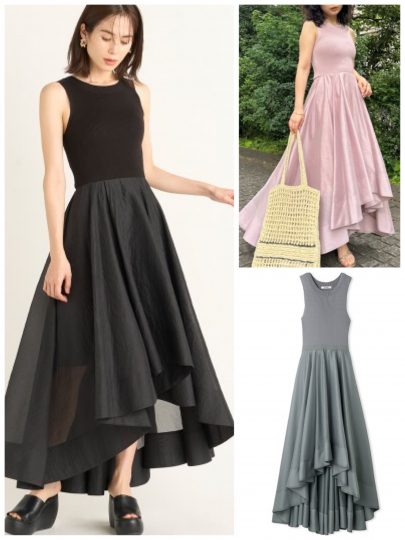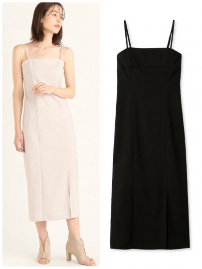 すっきり長方形を作るキャミワンピが、ストレートの厚みのある体をボリュームダウン。スリットで女らしさを上乗せして。