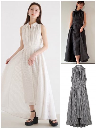 きちんと感があるシャツワンピは、コンサバな雰囲気が得意なストレートさんの鉄板。動きのあるフィッシュテールでドラマティックに。