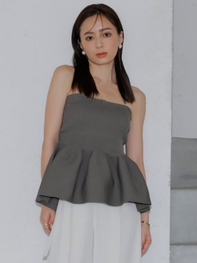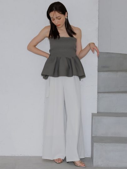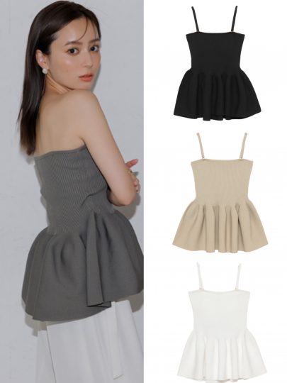 ハイウエストからのふんわりとしたペプラムが女心をくすぐるニットキャミは、anuansらしいシックなカラーバリエで大人可愛い仕上がり。ホールガーメントで編み立て着心地も◎。