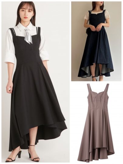 肩幅が目立ちやすいナチュラルさんは、重心を下げると全体がバランスよく見えます。ローウエストで切り替えたワンピはその条件にぴったり。