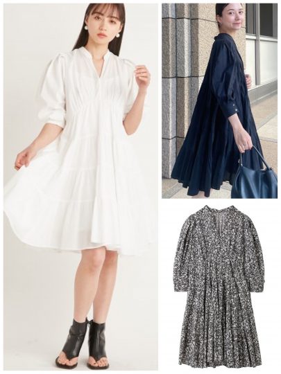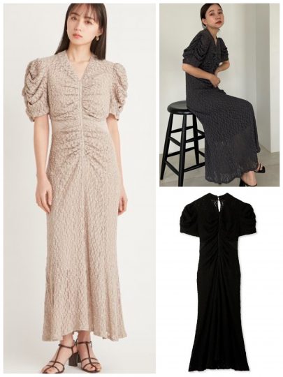 デコラティブなデザインにも負けないボディの持ち主なので、凝ったワンピも着こなせます。シャーリングの立体感でタイトなサイズへの苦手意識をフォロー。