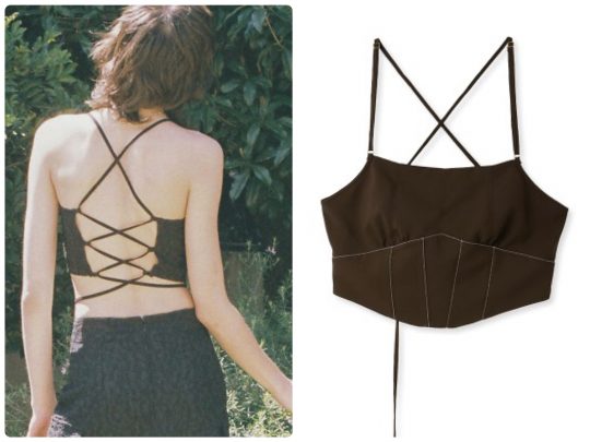 インナーとしてだけでなく、カップを抜いてトップスに重ね着するなど、着回し力のあるビスチェ。背中のレースアップのストラップが、コーディネートのアクセントになる1枚。
