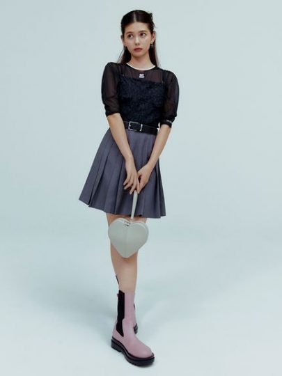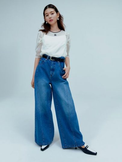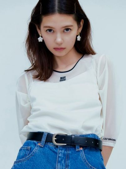 胸元には「MARY QUANT」、袖口には「LILY BROWN」のロゴ刺繍が施された豪華♡トレンドのシアートップスを襟ぐりのパイピングで、ちょっぴりレトロに仕上げ。使いやすい白黒と、オリジナルのチェック柄を浮かべたブルーの3色展開です。