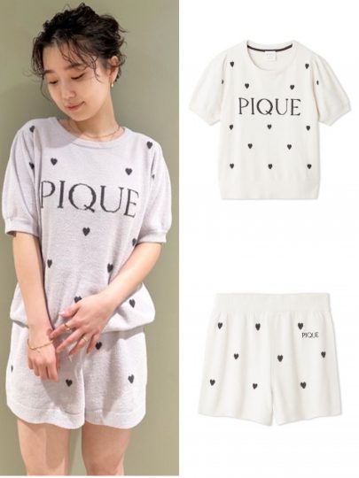 思わず触りたくなるような、滑らかなジェラピケのジャガードシリーズでリラックス♡ モノトーン調のハート柄と、パフスリーブで大人の可愛らしさをキープ。ONLINE限定カラーのラベンダーも、間違いないオフホワイトも捨てがたい。こちらはSUMMER SALE対象の30%オフで、プルオーバー¥5,852、ショートパンツ¥4,851です!