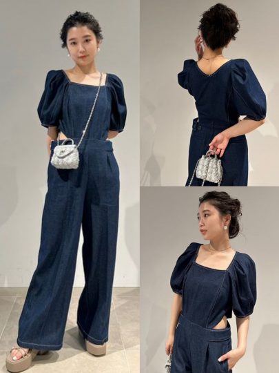 大胆なウエストオープンディテールでトレンド感を演出したオールインワン。ボリュームのあるパフスリーブとのバランスがおしゃれです。テーマパークやフェスなどの、アクティブなシーンにぴったりなデニム素材で大人のカジュアルに。