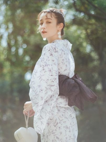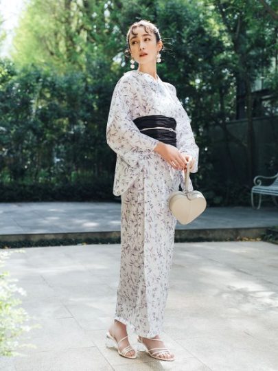 ドライで清涼感のある滝流れ生地に、繊細なタッチで描かれたオリジナルの花柄が素敵♡へこ帯と帯締めもセットになっていて、お着物の様な雰囲気で大人っぽく着られます。写真映えも意識したいお祭りシーンにぜひ。