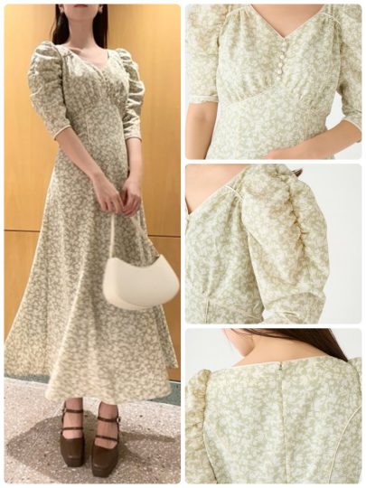 淡い色に華やかなプリントを浮かべた可憐なワンピース。切り替えに配色のパイピングを施し、縦見えすることでスタイルアップを実現。立体感のあるボリューム袖や胸元のくるみボタンなど、女性らしさを高めるディテール使いでデートにぴったり。