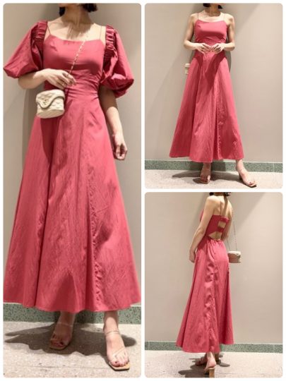 ボレロがセットになっているキャミワンピは、使い勝手のいいカップイン仕様。ボレロを脱げば、大胆な背中のカッティングがバックシャンなデザイン。シチュエーションに合わせてボレロで肌見せの分量を調整できるし、バカンス気分を高めてくれる1枚です。