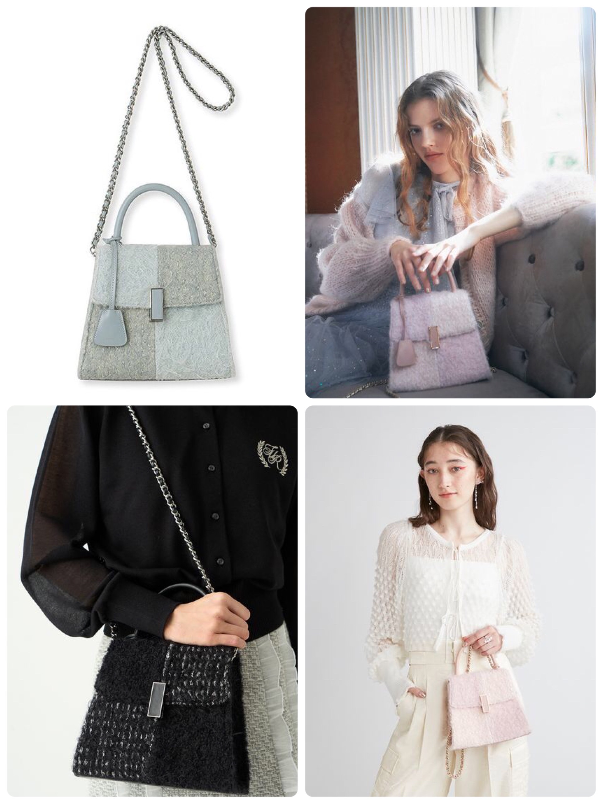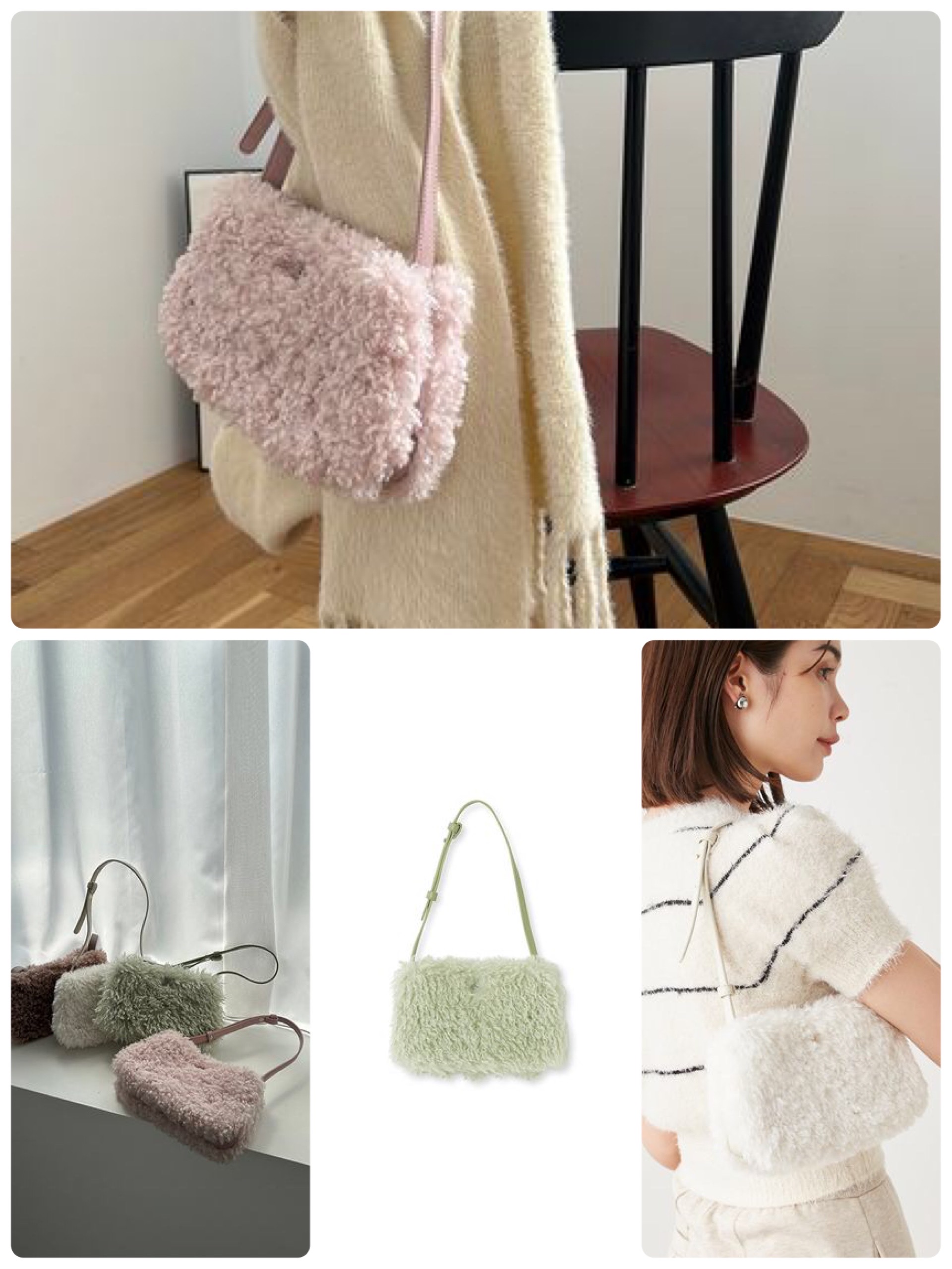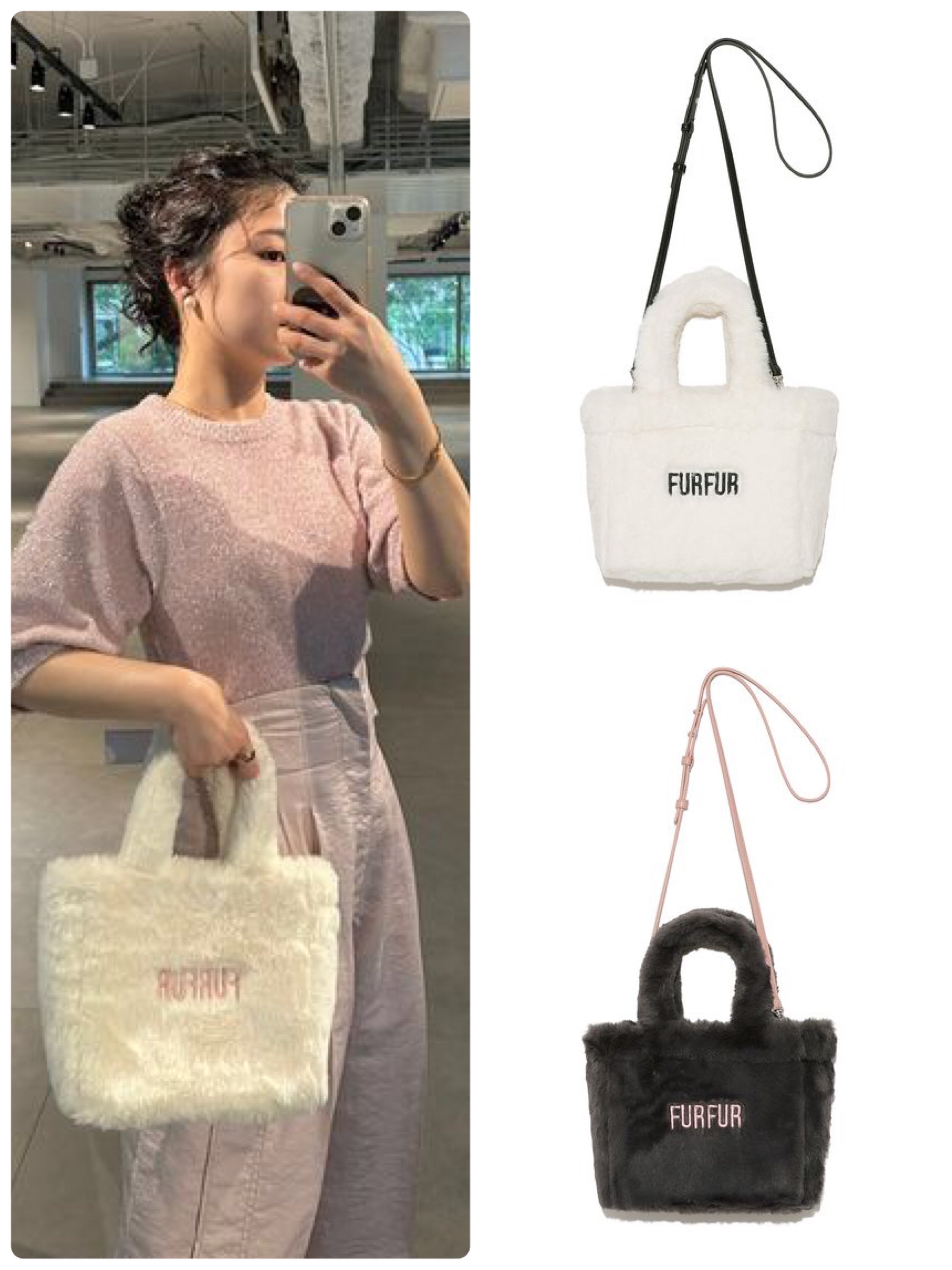 こちらも大人気の、FURFURの毛足の長いファーライクなツイードバッグ。微妙に色みや柄が異なるバイカラーデザインがオシャレ。ピンクはWEBのみの販売。【WEB限定カラー】バイカラーツイードバッグ/ファーファー