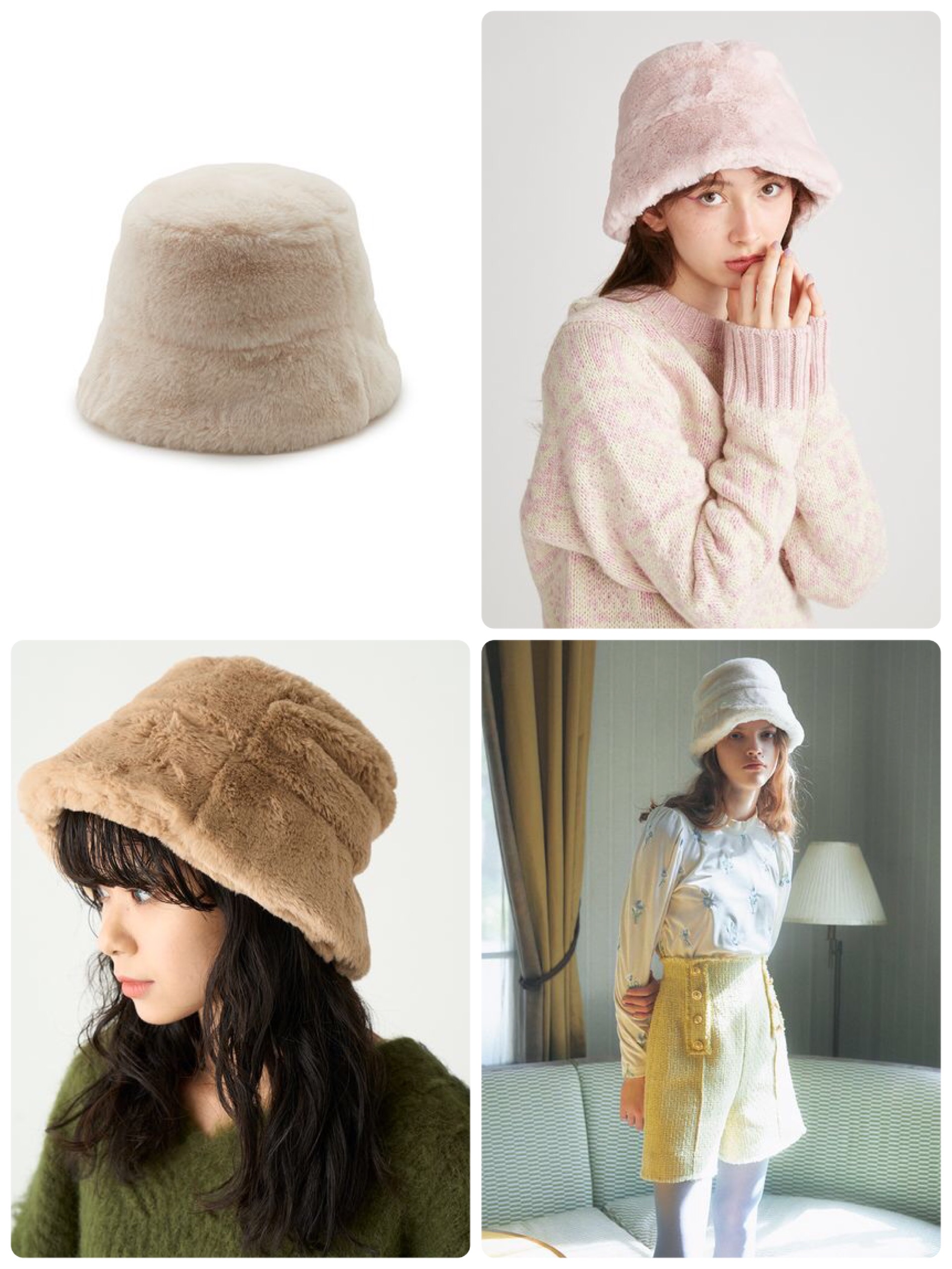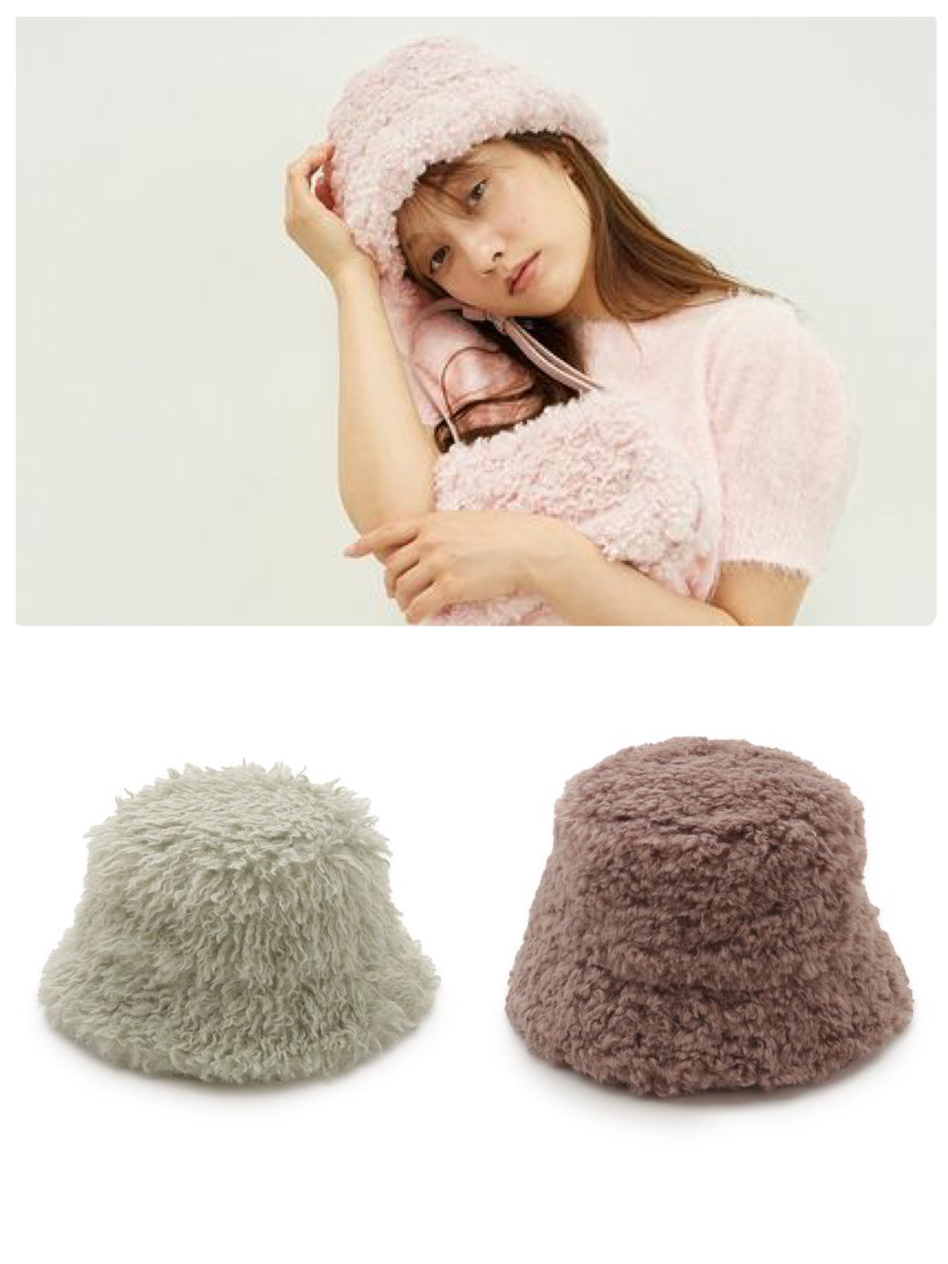 もけもけした毛足がカジュアルで可愛い、カラーバケットハット。ミント、モカ、ライトピンクなど、フェミニンなスタイルに合うカラバリのセンスもさすが。ファーカラーバケハ/スナイデル