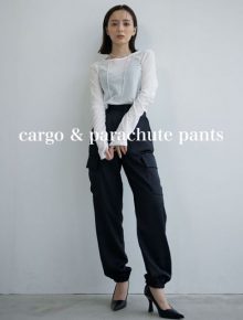 ウエストの立体シルエットが華奢な脚元を演出するカーゴパンツ。クロップドトップスと合わせて程よく肌見せするのがおすすめな着こなしです。