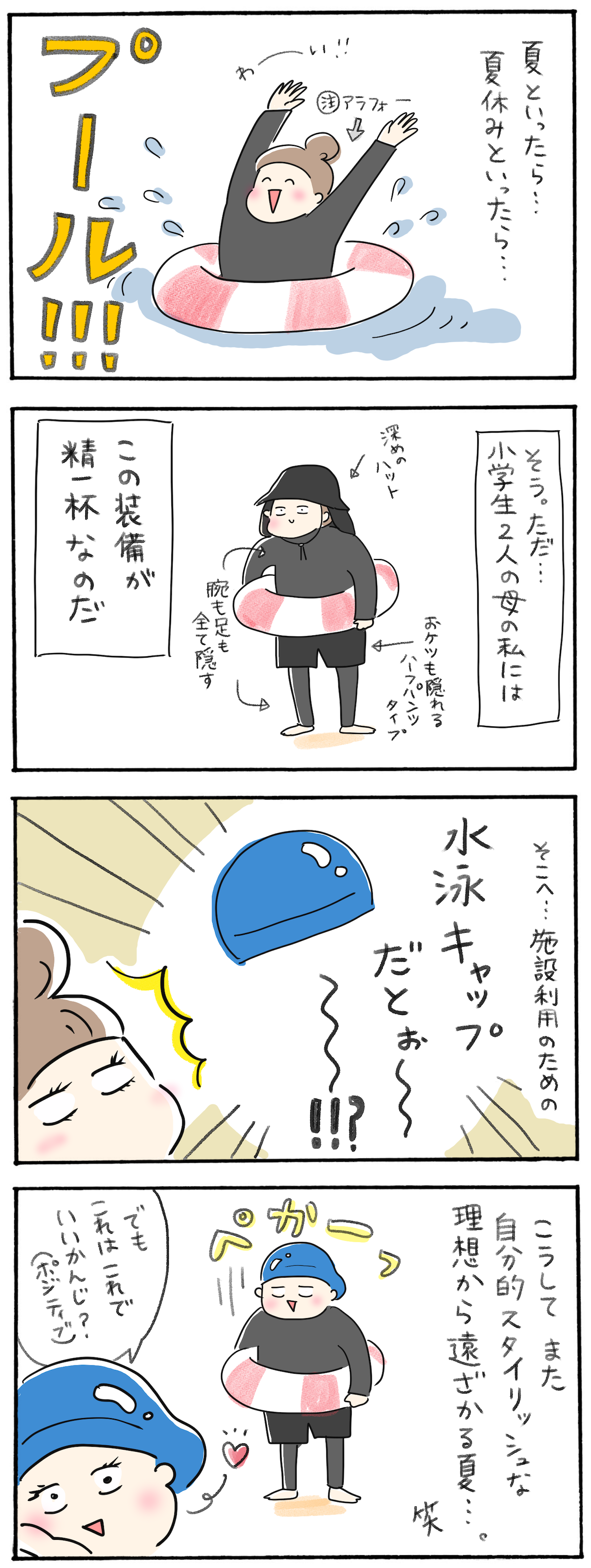 中でも、水泳キャップを被らないといけない施設もあったりしてね!