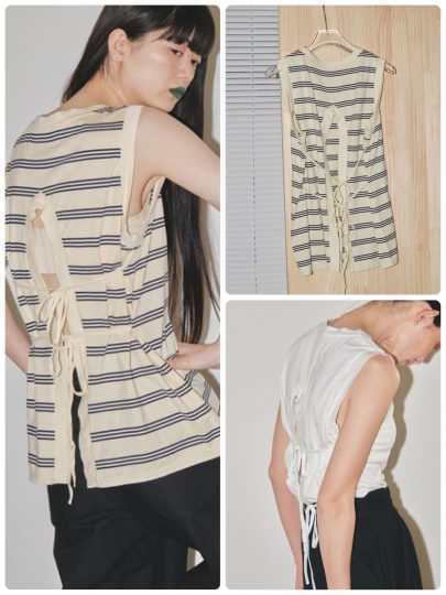 古着のようなニュアンスのタンクトップを女性らしいバックオープンデザインに落とし込んだTODAYFULならではの一着。どんなボトムとも相性がよく、晩夏にかけて大活躍してくれそうです♡
