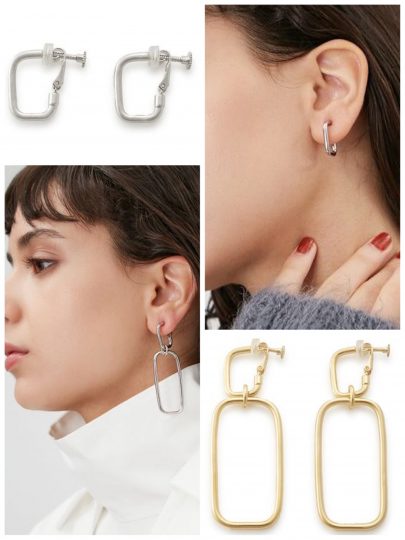 スクエアのフープを繋げたこちらは、パーツを外せばシンプルになる2way仕様。中が空洞で軽いのも嬉しい。