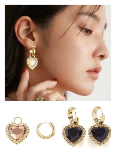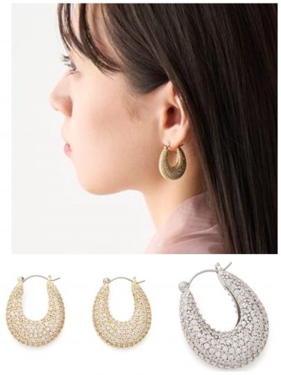 ストーンを敷き詰めたゴージャスなデザインで、フープのカジュアルさを引き算。オケージョンにも活躍しそうです。