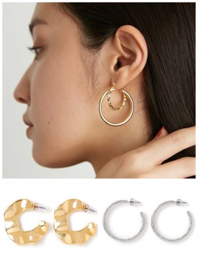 かなり華奢なフープの3個セット。他のピアスとの重ね付けなど、小ぶりだからこその組み合わせを楽しみたい。