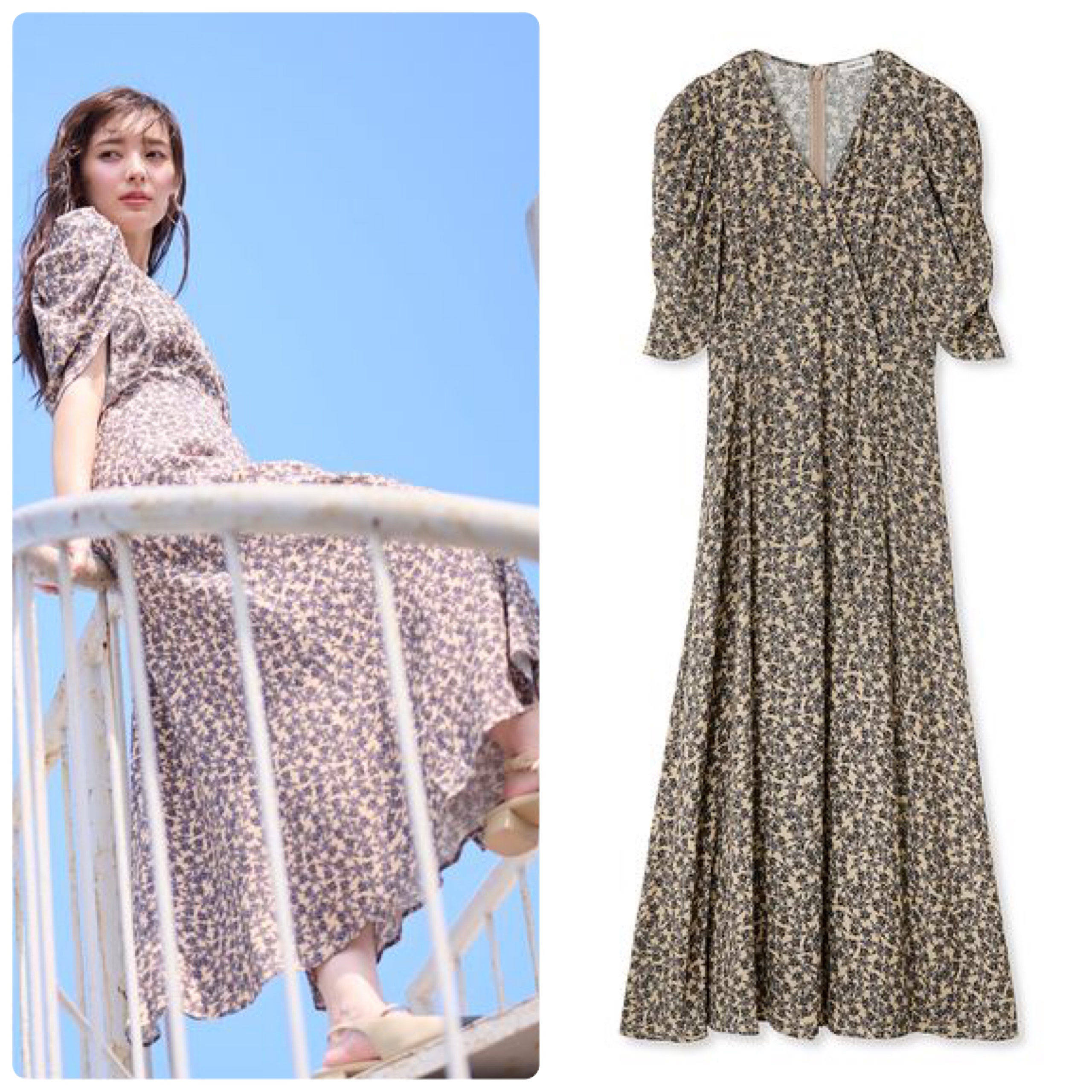 甘くなりすぎない大人っぽい花柄カシュクールワンピース。カシュクールでも胸元がはだけないように工夫されているので、1枚でも安心。秋の始まりに、茉由ちゃんみたいにアグレッシブに着たい。カシュクールフラワーワンピース/フレイアイディー