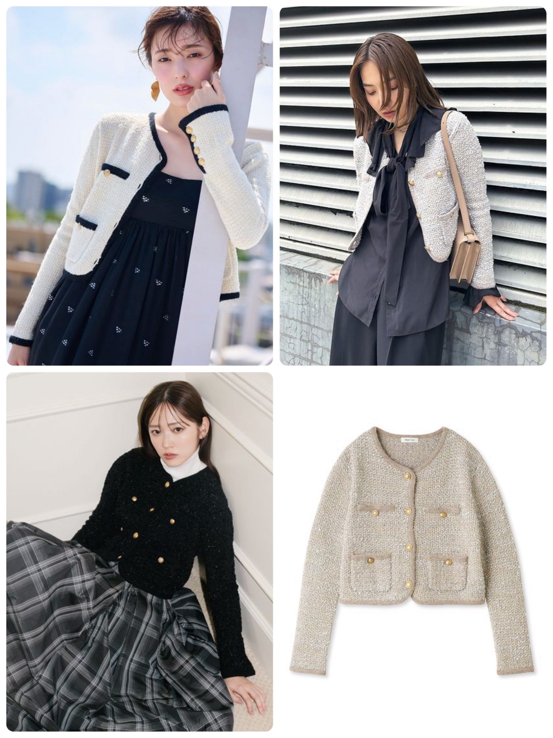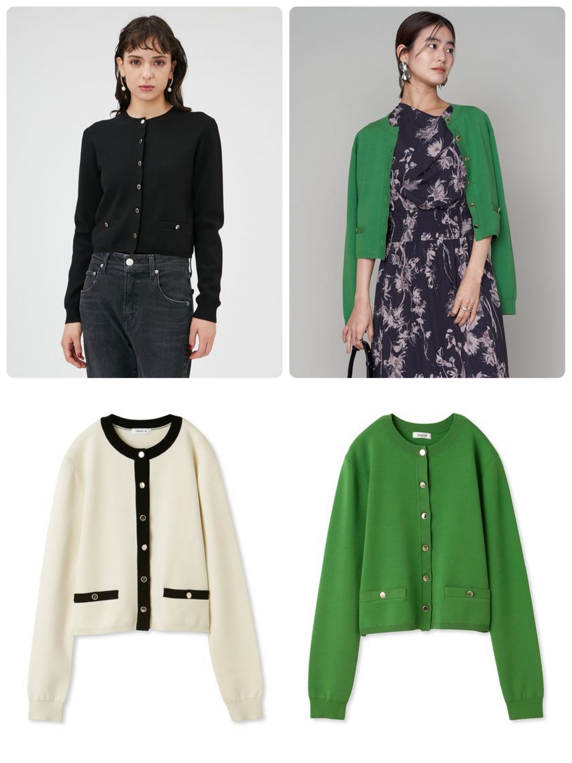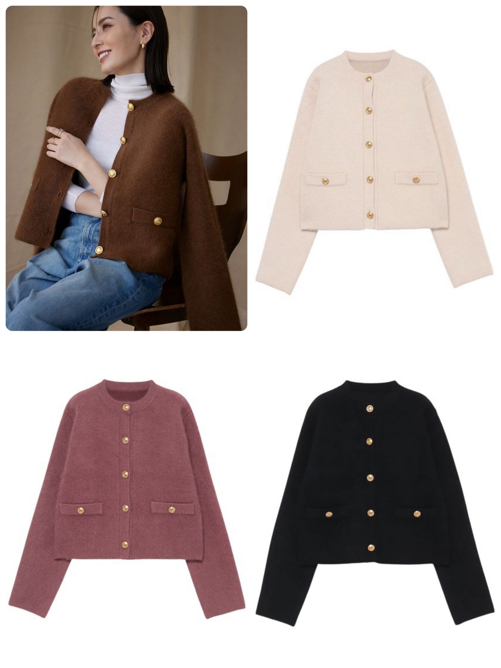 今大ヒット中の、アニュアンスのニットジャケット。毛足ふわふわのラクーンブレンドの素材で作られています。オリジナルのメタルボタンも、優雅なアクセントになっています。デニムなどカジュアルにも合わせやすいのが嬉しい。そして、モテそう!ラクーンブレンドノーカラーニットジャケット/アニュアンス