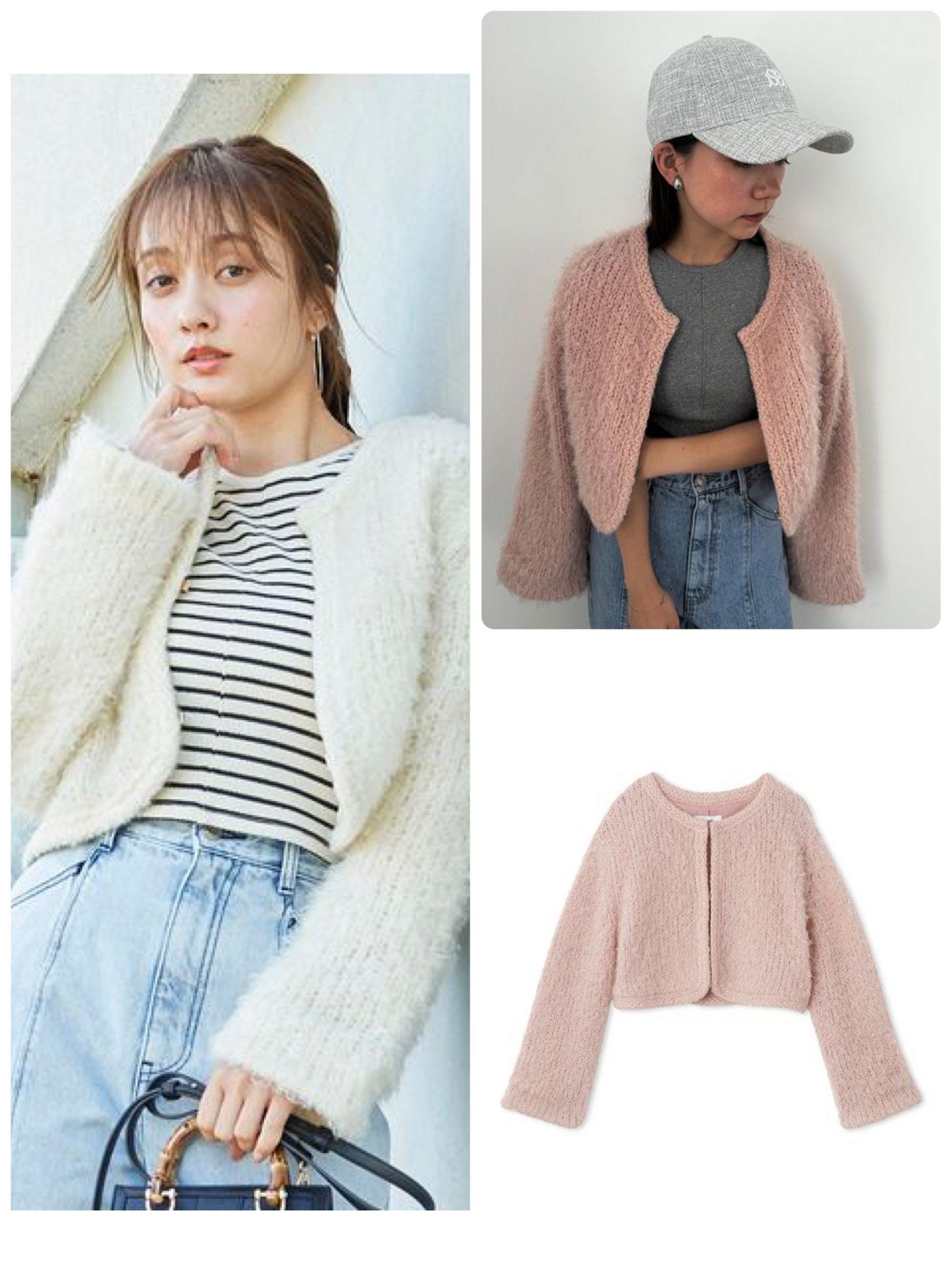 ファーのようなふわふわとした毛足の長い糸を使って作られた、ニットジャケット。綺麗なワンピースにも合いますが、あえてカジュアルにデニム&キャップなど、ボーイッシュなスタイルの肩がけなどに最適。アイボリーやピンクのほか、ラベンダーもあります。ファーライクニットジャケット/スナイデル