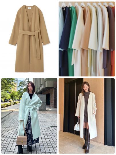 「グリーン」「ブラック」「グレー」の3色展開で、コートでありつつドレスのような華やかさが。