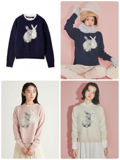 『ファーファー』で人気のキャットセーターが2匹のウサギになってアップデート♡ ウサギをジャガードで表現し、ふわふわした毛並みがとってもリアル!