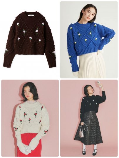 大ヒットを記録した玉編み刺しゅうカーディガンがニットトップスになって登場。