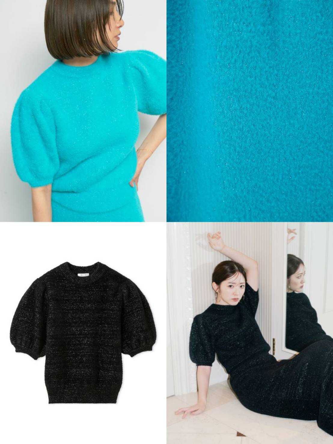 大人ブランドでよく目にする、今期のラメニット。こちらはFRAY I.Dのパフ袖ニット。同じ素材のスカートもあるので、セット風に着るのも素敵。フェザーラメパフニット/フレイアイディー