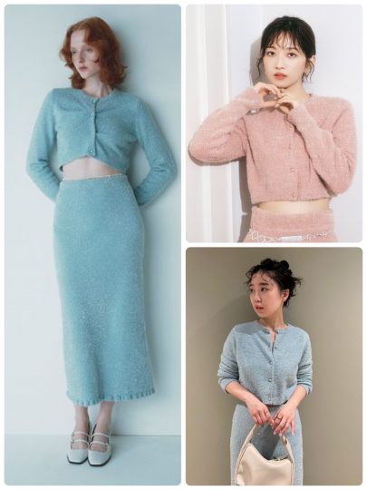 コンパクトな丈感ですが、ハイウエストボトムであればINできる丈感に仕上げています。ほんのりふわっと仕上げたパフスリーブ、ウォーミーなざっくり編みニットで女性らしさも満点。