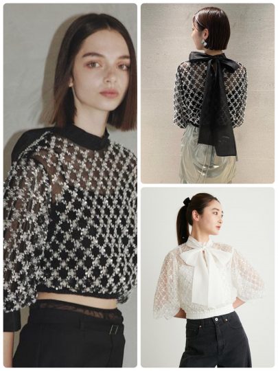 ゴージャスなあしらいに目を奪われる全方位から見てもリュクスなプルオーバーが登場。背面には大きなリボンをプラスして、キュートな演出も♡かなりゴージャスなルックスですが、意外と合わせるボトムを選ばないのでスタイリングに取り入れやすいんです。