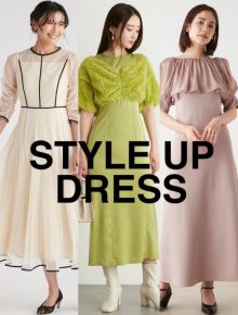 仕様は上のFRAY I.Dのワンピースと同じく、ボレロとキャミワンピースのセット。こちらはさらにボレロが短丈になり、軽やかなシフォン素材で作られているのが特徴。バックリボンで愛らしさが出せるのもポイント。