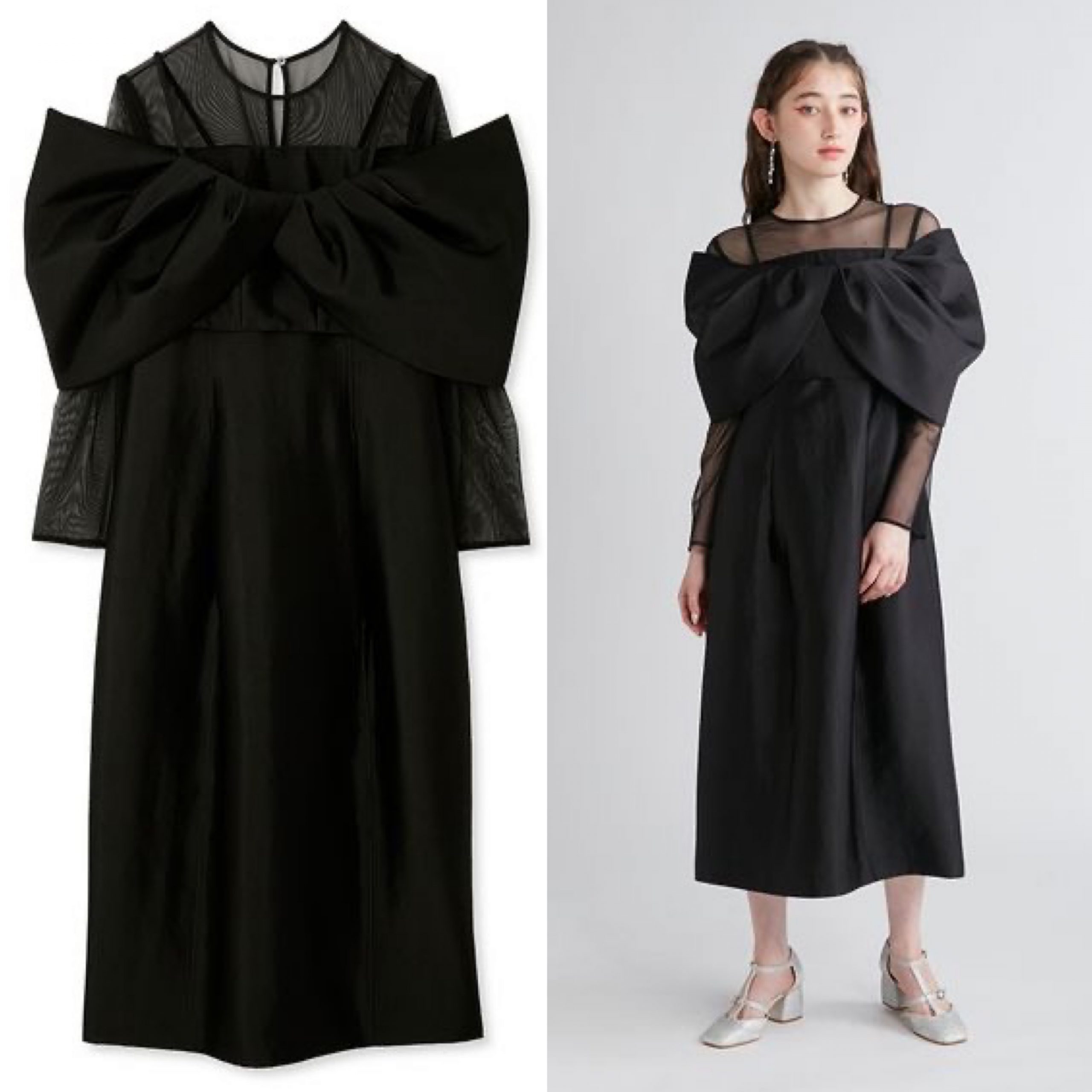 袖やデコルテ部分がシアー素材でできたサテンワンピースと、単体でも着回せるリボン型のキャミトップスのセットワンピース。透け感とリボンの立体感が作り出す奥行きが、他にはないドレススタイルを叶えてくれます。
