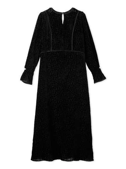光沢のあるサテンのパイピングが施された、繊細なフラワー柄のワンピース。上品な透け感が楽しめるオパール加工の生地を使っているので、オケージョンにもぴったり。