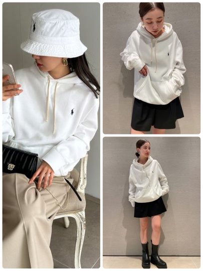 ゆるっとしたサイジングのパーカーなら腰回りだけと言わず、上半身全体をすっぽりカバー。メンズサイズのため、リラックス感と抜け感どちらも備えているんです。さらにPOLO RALPH LAURENを象徴するポニー刺繍が上品さもプラス。パパと共有するのもアリですね!