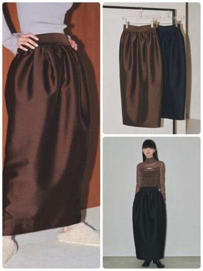 ギャザーをふんだんにあしらった腰回りのデザインとコクーンシルエットがキモ。シンプルトップスをインするだけでサマになるのでお試しあれ。