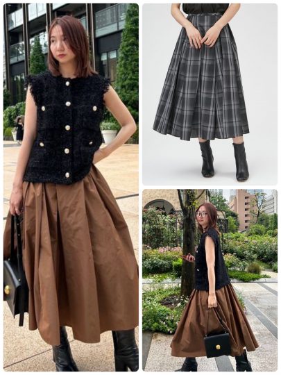 華やかなルックスのシフォンロングスカート。ティアードフリルが自然に気になるウエスト周りをカバーしてくれるんです。細かいプリーツも目眩しに一役買ってくれそう❤️