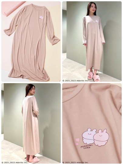 とろみ感があるカットソー生地で、胸元に”あさみみちゃん”と”あねみみちゃん”をプリント。透け感が気にならない「モカ」カラー、丈も長めで大人女性にピッタリ!