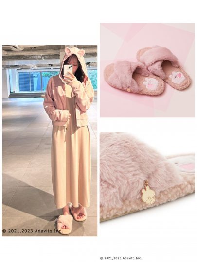 エコファー×ボア素材のスリッパは、これから寒くなる時期に必至。サイドにはキュートな”あさみみちゃん”チャーム付きです。