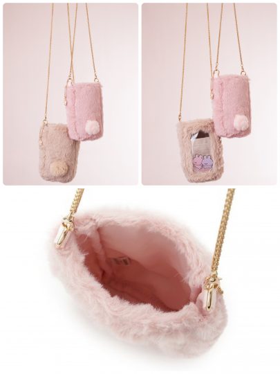 エコファー素材にコロンと丸いシッポがついたマルチショルダー。片面がクリア素材になっているので、アクスタケースとしても活用できます。
