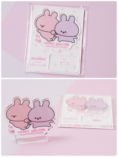 ウサギオンライン描きおろしイラストをアクリルスタンドに。組み立てると縦6×横6.5㎝サイズ、ここでしか買えない限定アイテムなので要チェックです。