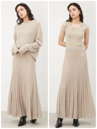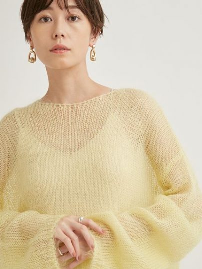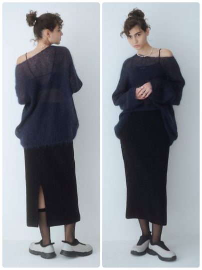 モヘアの柔らかさとシアー感がセンシュアルな印象を醸す、ローゲージのプルオーバーとワンピースのセットアップ。ワンピースのウエストゴム部分に、プルオーバーをちょっと挟めば、スタイルアップも狙えます。それぞれ単品でも着られるフレキシブルな逸品です。