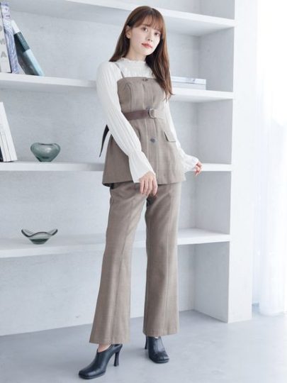端正でいて、ハンサムなスーツライクなビスチェトップスがお目見え。キュッとシェイプしたウエストラインが女性らしさを演出します。同素材のスカートとのセットアップコーデもおすすめ❤️