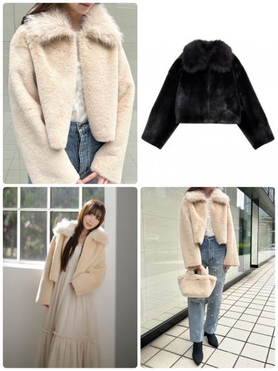 スタイルアップを叶えてくれるクロップド丈がポイント。粒の細かいボアを使用することで、カジュアル感を抑えてキレイめ風に。ボリューム感があるので、ワンピースやタイトなボトムに合わせるのがイチオシです。