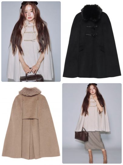1枚で絵になる『エイミー イストワール』で大人気のマントコート。今年は同色系のトグルと合皮のループでダッフルデザイン風に。