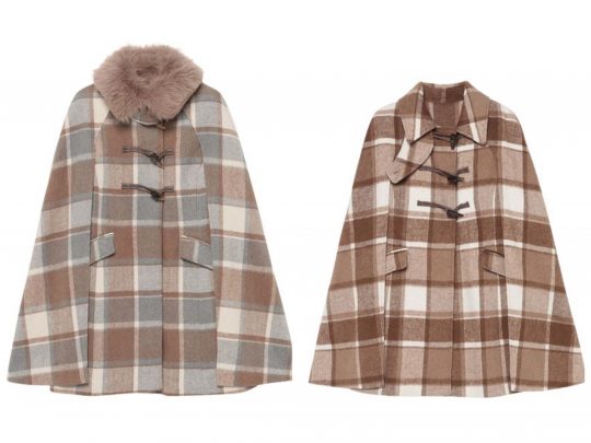 ワードローブにシンプルなアイテムが多い方は「チェック柄のダッフルマントコート」も素敵。