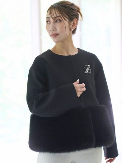 ふくらみのある柔らかなポンチ素材にふわふわファーを贅沢にあしらったデザイン。ファーの脇部分にはポケット付き。ドロップショルダーぎみのデザインでカジュアルダウンしやすく、ゆったりしているから重ね着もスムーズ。ジャケット感覚でさっと羽織れる短め丈もポイントです。