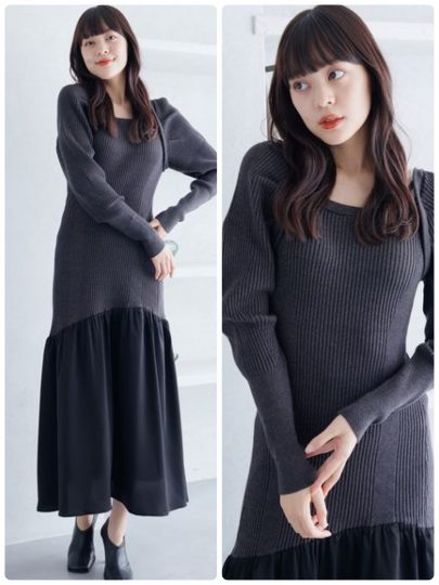 アシンメトリーなスカート切替が、こなれ感を漂わせるリブニットワンピース。デコルテラインを綺麗に見せてくれるスクエアネックに、ストラップデザインでアクセントをプラス。タックで作り上げたパワショルスリーブで、二の腕周りが気にならないシルエット。