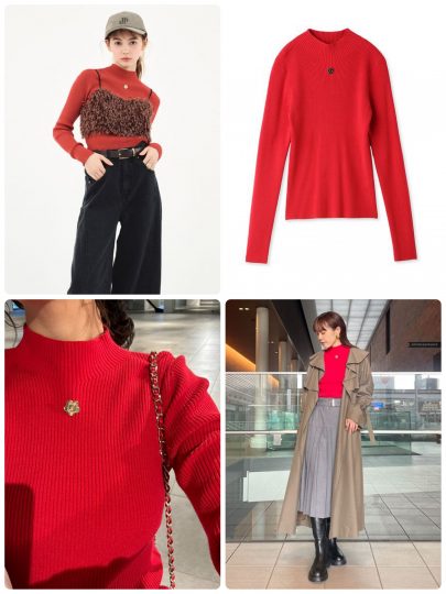 「レッド」はコーデの主役になる華やかさ。お手持ちのシンプルなボトムを合わせるだけでアカ抜けます。