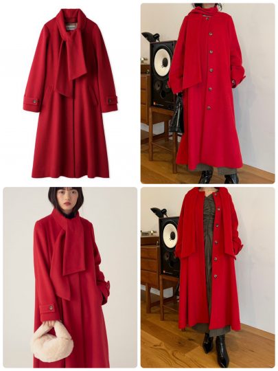 昨年人気だったボウタイコートが、取り外し可能の2way仕様にアップデートして登場! ボウタイを取り外せば、シンプルなAラインコートとして着用できます。