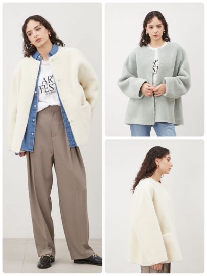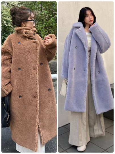 女性らしさを引き立てる立体的なコクーンシルエットと上品なボアの粒感がポイント。やわらかくて暖かい生地で真冬も頼りになりそうです♡